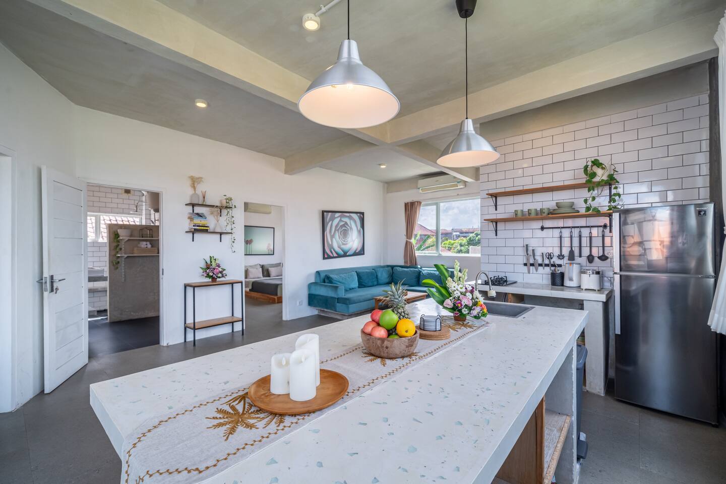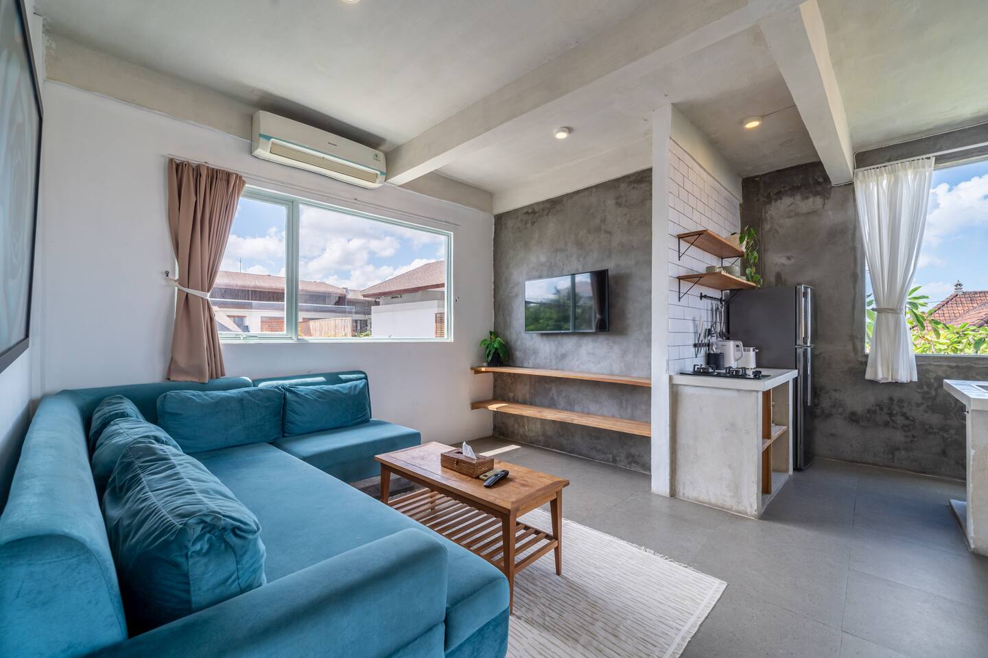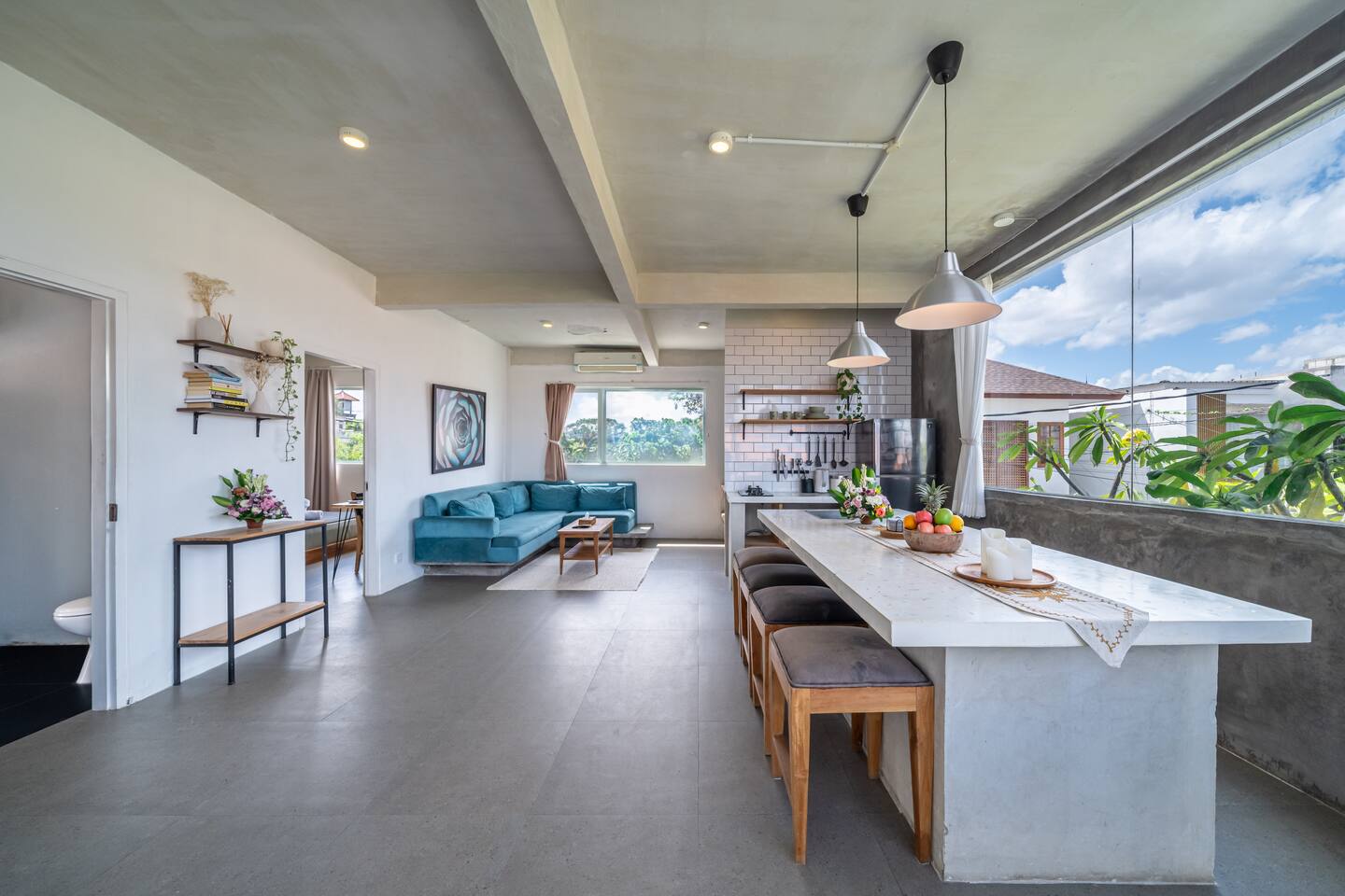 Nestled amidst the tranquil ambiance of Canggu, Bali, our two-bedroom apartment offers a serene retreat in the heart of the island's cultural epicenter. Perfectly located in the middle of Canggu, it is just a short stroll from the beach and the popular Crate Cafe. Tucked away in a peaceful enclave, this unit features a quiet, enclosed garden and a shared pool, exclusively shared between just 4 apartments.